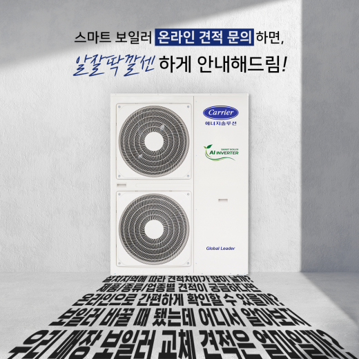 역대급 난방비 폭탄 해결 방법은? 가스 보일러 (LPG) 대비 최대 약 65% 요금 절감으로 바닥난방, 급탕, 냉난방까지 365일 걱정 없는 사계절 솔루션 세계가 선택한 초절전, 고성능 히트펌프 캐리어 스마트 보일러