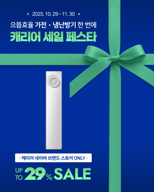 우리집에 쾌적함을 더할 절호의 기회 캐리어 BEST 에어솔루션을 특별한 가격에! 1등급 으뜸효율 제품 추가 10% 환급혜택! 에어컨 분해세척 서비스 최대 29% 할인! 잠깐! 이 모든 혜택은 오직 캐리어 네이버 브랜드 스토어에서만 지금 바로 프로필 링크 확인하고 쾌적한 사계절을 준비하세요 #Carrier #캐리어 #EnergySolution #에너지솔루션